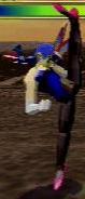 蹴り上げにキャンセルがかかって、突然、サマーソルトキックという変な技。このゲームは無茶なキャンセルが多い。(ただのKでさえ何もしなくても戻りモーションなかったり…)